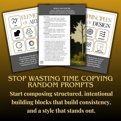 Doesn’t matter. This system isn’t tied to software. It’s rooted in timeless design principles that make any AI art tool produce better, more intentional results.