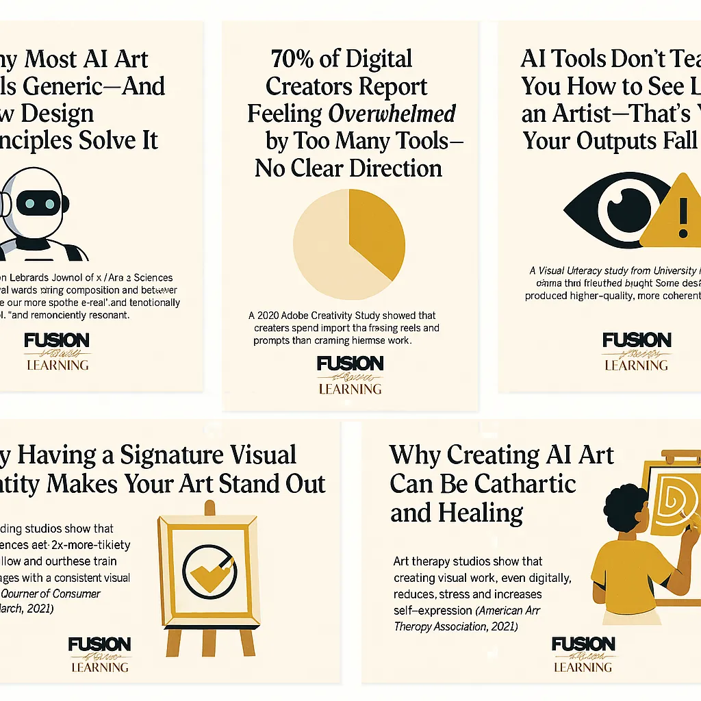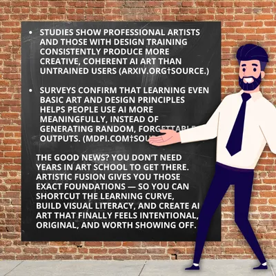 "I came in with zero art background. Honestly, I was intimidated. But the Fusion Art Co. Learning tools broke things down, line, light, and balance. It finally clicked. I don’t just copy prompts anymore. I actually feel like I’m learning to see like an artist."