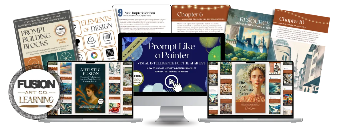 Artistic Fusion is the foundational ebook that gives you the building blocks traditional artists rely on, adapted for AI. It will completely change the way you approach your prompts and how you produce your art.